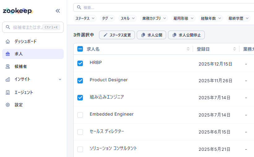 求人をチェックボックスで選択しない場合、全件ダウンロードされます。件数によってはダウンロードに時間がかかる場合がありますのでご注意ください。